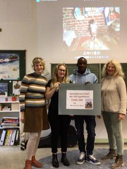 Bereits im Juli letzten Schuljahres liefen die Kinder der Grundschule Egloffstein bei bestem Wetter ihre Runden für einen guten Zweck, nämlich für Kinder in Afrika. Eltern, Verwandte und Nachbarn waren aufgerufen, das Engagement ihrer Kinder mit Spenden zu belohnen. Mit großer Freude konnten wir nun einen Scheck an Frau Janina Möck und ihrem Mann Isaac Matovu übergeben, die in Uganda selbst vor Ort ein Kinderwaisenhaus aufgebaut haben und betreuen. Kinder erhalten dort die Möglichkeit, in gesicherten Verhältnissen aufzuwachsen und auch regelmäßig eine Schule zu besuchen. Ziel ist es, den Kindern langfristig eine Ausbildung zu ermöglichen, damit sie bessere Chancen in der Zukunft haben. Frau Möck, die für die eigens dafür gegründete Organisation “ We care for them“ die Spenden sammelt, hat den Schulkindern aus Egloffstein nun mit einer authentischen Berichterstattung einen Einblick in das Leben ihrer Waisenkinder gegeben. Interessierte können in der Homepage www.wecareforthem.de Genaueres erfahren. Wir sind sehr stolz über die erlaufene Summe von 2340,50 €. Ein herzliches Dankeschön allen Spendern!