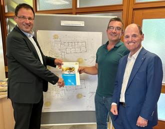 Staatssekretär Martin Schöffel, Bürgermeister Stefan Förtsch und MdL Michael Hofmann bei der Förderbescheidsübergabe