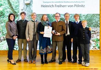Alle zwei Jahre verleiht das Bayerische Staatsministerium für Ernährung, Landwirtschaft, Forsten und Tourismus den Staatspreis für vorbildliche Waldbewirtschaftung. Das Staatsministerium würdigt damit vorbildliche und oft jahrzehntelange Leistungen privater und körperschaftlicher Waldbesitzerinnen und Waldbesitzer für eine nachhaltige Waldbewirtschaftung.
