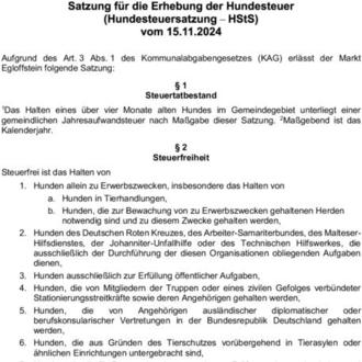 Satzung für die Erhebung der Hundesteuer (Hundesteueresatzung – HStS) vom 15.11.2024