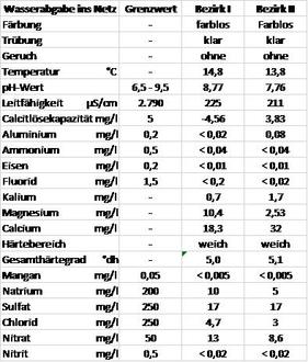 Nachstehend veröffentlichen wir die Untersuchungsergebnisse gemäß der Trinkwasserverordnung.