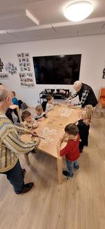 Die Kinder und Senioren konnten zusammen Teig kneten, Ausstechformen verwenden und die Plätzchen verzieren. Solche Aktivitäten fördern nicht nur das Miteinander, sondern bieten auch eine Gelegenheit, Traditionen zu bewahren und wertvolle Erinnerungen zu schaffen. Dabei lernen die Kinder viel über gemeinschaftliche Arbeit und die Senioren können ihre Erfahrung und Weisheit weitergeben.