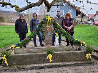 Ein ganz großes Dankeschön an die Frauengruppe, bestehend aus Theresa Hofmann, Alexandra Hintenlang, Tina Hintenlang, Katharin Kohl, Kathrin Lammer, Julia Schmitt, Britta Wetzel, Jessica Dominguez-Orellana, Sabine Bachmann und Eva Kilian, die auch in diesem Jahr wieder dafür gesorgt hat, dass der Brunnen in österlichem Gewand erstrahlt.