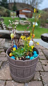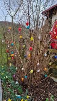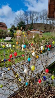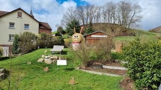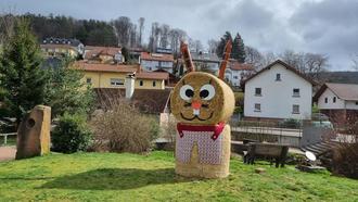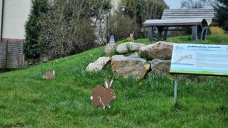 Es ist schon zur Tradition geworden, dass der Vorstand der Dorfwerkstatt alljährlich das Backhausumfeld österlich schmückt. Viele bunte Eier zieren die Hecken und Sträucher und auf der Wiese haben die kleinen Osterhasen ihren Platz gefunden. Unser großer Hase, den wir Dank Armin Schmitt wieder aufstellen konnten, wartet schon sehnsüchtig auf alle kleinen und großen Gäste. Wer mag, kann gern noch bunte Eier rund um das Backhaus aufhängen.