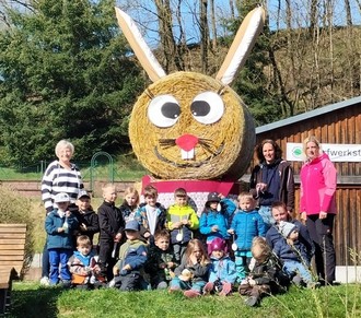 Die Kinder vom Waldkindergarten helfen der Dorfwerkstatt beim Schmücken.