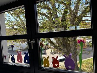 Die Kinder vom Abenteuerland schmücken die Rathausfenster