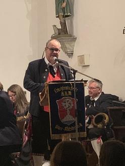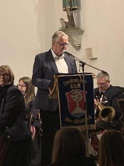 Am Ende bedankte sich der 1. Vorsitzende Thomas Rolli bei Dirigent Alexander Kropp, dem Flötenquartett, dem Jugendorchester sowie den 37 Musikerinnen und Musiker des Großen Orchesters, den Sängerinnen und Sängern, den Bläsersolisten, dem Gastspieler Tom Beckenbach, Pfarrer Rothermel und der Pfarrgemeinde sowie dem Moderator des Konzerts, dem Ehrenvorsitzenden der KKM Michael Wetzel und zu guter Letzt den zahlreichen Gästen verbunden mit der Hoffnung, dass sie nach diesem Weihnachtskonzert voller Freude und erfülltem Herzen nach Hause gehen.