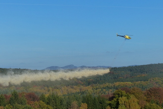 Die Ausbringung des Kalkes erfolgt mittels Hubschrauber, hierfür konnte das Forstamt Beerfelden eine, der wenigen am Markt verfügbaren, Spezialfirmen gewinnen.