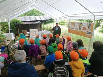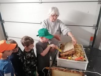 Herr Arnold erklärte den Kindern geduldig den Lebenszyklus einer Biene und dass ein Imker dafür verantwortlich ist, Bienen zu züchten und zu pflegen, um Honig zu produzieren. Dazu gehört die Betreuung der Bienenstöcke, die Überwachung der Gesundheit der Bienen, die Ernte des Honigs und die Sicherstellung einer optimalen Umgebung für das Wachstum und die Produktivität der Bienen. Imker müssen auch Maßnahmen ergreifen, um ihre Bienen vor Krankheiten, Parasiten und andere Bedrohungen zu schützen. Sie spielen eine wichtige Rolle im Ökosystem, da die Bienen für die Bestäubung von Pflanzen unverzichtbar sind.