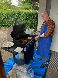 Einen ganz wichtigen Part spielte an diesem Tag einmal mehr Mitorganisator Egon Ruppert. Er, der ansonsten eher als Erzähler von Pfälzer Geschichten oder als Moderator der Bingo-Veranstaltungen bekannt ist, trat diesmal in einer ganz anderen Rolle auf. Er stand an einem „professionellen“ Grill, der ebenfalls von einer Privatperson zur Verfügung gestellt wurde. Auch diese Aufgabe wurde von ihm bravourös gelöst und er erhielt für seine Grillkünste durchweg Komplimente.
