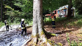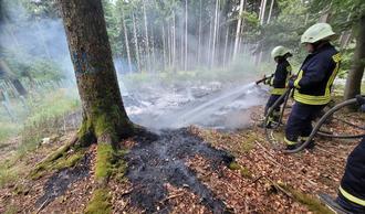 Zwei Tage später, am 26.06.2025 waren wir erneut bei einem Brand gefordert. Ein aufmerksamer Radfahrer bemerkte den Brand einer Waldböschung und verständigte geistesgegenwärtig über den Notruf die Feuerwehr. Durch sein schnelles Handeln konnte verhindert werden, dass sich der Brand während der andauernden Hitzeperiode weiter ausbreiten konnte. Mittels Schnellangriff unseres Staffellöschfahrzeuges konnte die brennende Fläche in kürzester Zeit abgelöscht werden. Die Feuerwehr Abtsteinach war mit insgesamt 14 Einsatzkräften, 2 Löschfahrzeugen und dem Einsatzleitwagen vor Ort. Zusätzlich fuhr die Feuerwehr Heiligkreuzsteinach den Bereitstellungsraum am Sportplatz in Unter-Abtsteinach an. Die Kameraden aus Heiligkreuzsteinach mussten jedoch nicht mehr tätig werden und konnten zeitnah aus dem Einsatz entlassen werden. Mit vor Ort war zudem der zuständige Förster.
