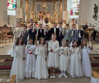 Abtsteinach. Unter dem Motto „Kommt her und esst“ feierten Kinder aus Abtsteinach, Mackenheim, Siedelsbrunn und Löhrbach ihre Festliche Kommunion in der Kirche Sankt Bonifatius in Abtsteinach, diese wurde von Herrn Pfarrer Abbe Corneille Mbadu abgehalten. Die festlich geschmückte Kirche bot den würdigen Rahmen für einen besonderen Tag im Leben der jungen Christen.