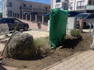Am Montag haben die Mitarbeiter des Bauhofes gemeinsam mit der Firma Hintenlang das neue Schild aufgestellt. Bis zur Bekanntgabe des Namens bleibt dieses noch verhüllt.