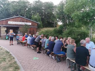 Als der erste Shuttlebus in Unter-Abtsteinach am Backhaus ankam, hatten die Mitglieder der Freiwilligen Feuerwehren aus Unter- und Ober-Abtsteinach bereits alle Hände voll zu tun um die zahlreichen Besucher mit Essen und Getränken zu bewirten. Wurstsalat, Käsesalat, Bruschetta aus dem Holzbackofen und für Süßschnäbel eine Waffel am Stiel – bereits vor dem offiziellen Ende der Veranstaltung konnte „Ausverkauf“ gemeldet werden.