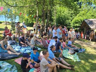 Mit der Picknickdecke im Gepäck waren alle Kindergartenkinder mit ihren Familien zum großen Sommerfest des Fördervereins der Kindergartenkinder Abtsteinach e.V. eingeladen. Die Idee des Fördervereins besteht dahinter, dass einmal im Jahr mehr die Möglichkeit besteht, dass alle Kindergartenkinder aus drei Einrichtungen zusammenkommen, um sich besser kennen zu lernen und gemeinsam miteinander zu spielen. Eröffnet wurde das Fest durch die Kinder selbst. Engagiert hatten die Erzieherinnen im Vorfeld mit den Kindern geübt. So präsentierte das Abenteuerland den „Klatsch-Patsch-Tanz“, die Kinderinsel das Tanzspiel „Die Raupe Ursula“ und der Wirbelwind ein Fingerspiel sowie ein Lied rund um den Marienkäfer. Auch Alexander Kropp war mit den Kindern der Musikalischen Früherziehung Teil der Eröffnung. Neben der großen Hüpfburg, die dankenswerterweise von der Firma Jöst abrasives zur Verfügung gestellt wurde, gab es für die kleinen Gäste eine große Auswahl an Glitzertattoos, Kinderschminken sowie Flechtzöpfe im Angebot. Auch eine Schatzsuche im Sandkasten, bei der Edelsteine und Murmeln zu finden waren, durfte nicht fehlen. Es wurde fleißig gebuddelt. Mit Riesenseifenblasen konnten die Kinder ihr Geschick testen. Lena Reppel versüßte den Kindern den Nachmittag mit Zuckerwatte und frischem Popcorn. Kulinarisch hielt der „Foodliner“ selbstgemachte Burger und Pommes bereit. Eine Abkühlung an dem heißen Nachmittag gab es durch einen Eiswagen. Als plötzlich eine Frau mit Hexenhut, Bollerwagen und Hupe zum Grillplatz hereinrollte, versammelten sich alle Kinder und schauten gespannt der Zaubershow der Hexe Smilla zu. Viele Zaubertricks, wie zum Beispiel mit dem nicht leer werdenden Wasserkrug, brachten die Kinder ins Staunen. Im Anschluss gab es von Hexe Smilla für die Kinder eine Ballonmodellage: ob Springmaus, Marienkäferarmband, Hut oder Schwert, kein Wunsch der Kinder blieb offen. So verbrachten alle großen und kleinen Gäste einen kurzweiligen und entspannten Nachmittag an der Grillhütte Steinachquelle, der durch das gemütliche Ambiente der mitgebrachten Picknickdecken an ein Festival erinnern ließ. Der Vorstand bedankt sich bei allen Helfern, der Gemeindeverwaltung, dem Bauhof und den Erzieherinnen für die gute Zusammenarbeit und hofft, im nächsten Jahr wieder eine gemeinsame Aktion für alle Kindergartenkinder in Abtsteinach anbieten zu können.