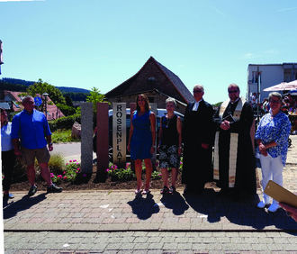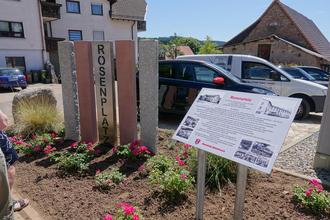 Adam Arnold machte damals als erster den Vorschlag für den Namen Rosenplatz. Angelika Beckenbach bedankte sich recht herzlich bei Herrn Arnold für den Vorschlag und auch für die Mithilfe bei der Recherche über das alte Gebäude „Zur Rose“. Bei der Recherche haben ebenfalls Gerald Hintenlang und Werner Krapp sehr unterstützend mitgewirkt. Herzlichen Dank dafür.