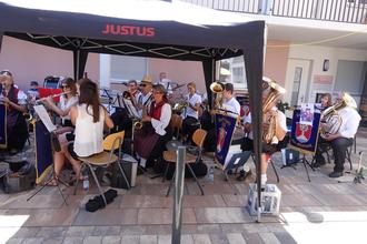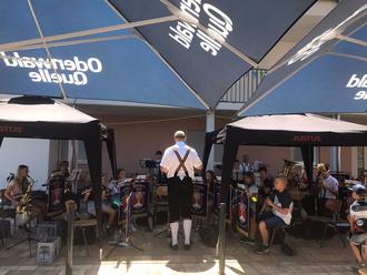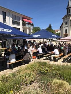 Bei strahlend blauem Himmel herrschte schon am Morgen reges Treiben auf dem Platz vor dem „Betreuten Wohnen“. Die KKM baute mit Unterstützung des gemeindlichen Bauhofes Tische und Bänke auf und die Bewohner schmückten ihre Balkone.