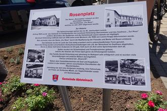 Nur dank der vielen Erinnerungen aus den früheren Zeiten konnte ein Hinweisschild erstellt werden, das die Geschichte über das frühere Gasthaus „Zur Rose“ erzählt.