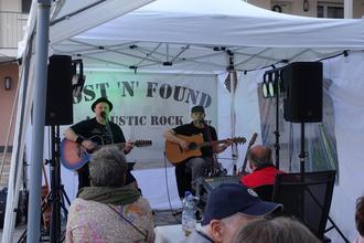 Schon früh am Abend waren die Plätze auf dem Rosenplatz besetzt. Das Duo Lost`n`Found hatte die richtige Musikauswahl im Gepäck und das Publikum genoss sichtlich den lauen Sommerabend. Bei leckerem Essen und diversen Getränken verging die Zeit wie im Flug.