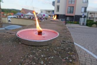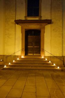 Mit Einbruch der Dunkelheit leuchteten dann auch die Kerzen auf der Kirchentreppe und die Fackeln auf der Mauer. Ein traumhaftes Licht in der Überwälder Traumnacht.