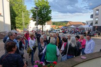 Als um 20.00 Uhr Trudl Wittmann und Christel Röder zur Führung unter dem Titel „Alte Hausnamen und Muttergotteshäusel“ riefen, fanden sich zahlreiche Ortsbürger am Rathausbrunnen zusammen und starteten auf eine kurzweilige Tour.