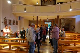 Auch bei der zweiten Führung in der Kath. Kirche St. Bonifatius konnten sich Gerhard Kunkel und Karl Berbner über viele Interessierte freuen. Die mitgebrachten Bilder zeigten Aufnahmen aus früheren Zeiten und die ein oder andere Besonderheit in der Kirche war auch für alteingesessene Ortsbürger neu.