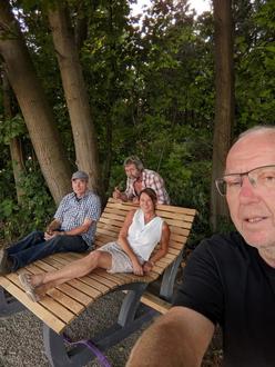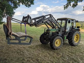Da war Fingerspitzengefühl gefragt. Und ein geübter Traktorfahrer, der eine mit Gurten am Frontlader befestigte Liegebank sicher vom „Schorkehof“ zum neuen Standort transportieren konnte. Matthias Schork, Besitzer des Traktors, zeigte sich dieser Aufgabe gewachsen, wobei er aber auf die Hilfe von Hans Kumpf und Hans Lammer angewiesen war.