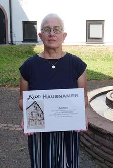 Sichtlich stolz hält Rita Kilian das Schild „Andons“ in den Händen. Denn sie bewohnt nicht nur das Haus mit diesem Hausnamen sondern ist auch noch die Ideengeberin für die ganze Aktion.