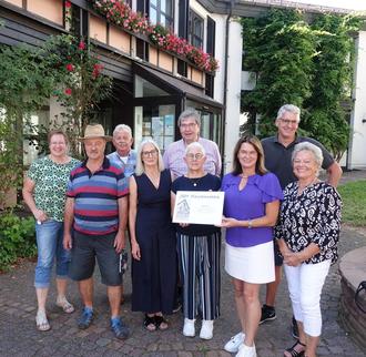 Angelika Beckenbach bedankte sich auch bei den anwesenden Geopark-vor-Begleitern Trudl Wittmann, Christel Röder, Gerhard Kunkel und Karl Berbner für bereits absolvierte Führungen zum Thema „Alte Hausnamen“ und freute sich auf künftige Rundgänge, dann unterstützt durch zahlreiche Schilder an den Häusern.