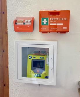 Parallel dazu wurde im Eingangsbereich des Vereinsheims eine zentrale Erste-Hilfe-Wand eingerichtet. Dort hat der Defibrillator, den die SGU im Rahmen des Förderprogramms „Herzenswunsch“ der Sparkassen-Stiftung erhalten hat, seinen festen Platz gefunden. Ergänzt wird der Defibrillator durch einen neuen Erste-Hilfe-Koffer und Pflaster, sodass im Notfall schnell und zuverlässig Hilfe geleistet werden kann.