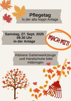 Die Blätter an den Bäumen färben sich langsam bunt und bald werden sie in einem dichten Teppich am Boden liegen. Höchste Zeit für den Herbstpflegetag in der alla hopp-Anlage!