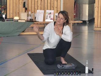 Zu Gast war eine Expertin für ätherische Öle, Christin Vogel. Gemeinsam mit Nadja Oberle, der Yogalehrerin bei Fit & Fun, gestalteten die beiden einen Workshop zum Thema „Gesund durch den Winter“ mit einer tollen Kombination aus Yoga und Ölen.