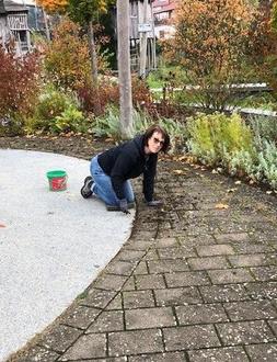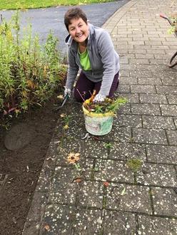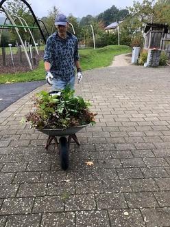 Auf die Stamm-Mannschaft ist einfach Verlass! Alle Helfer, die sich am Samstagvormittag in der alla hopp!-Anlage zum herbstlichen Arbeitseinsatz trafen, kannten sich gut aus und wussten, was zu tun ist. Während die Männer eine Birke fällten und eine zugewachsene Treppe freischnitten, widmeten sich die Frauen der Düngeaktion mit Schafwolle. Von dieser war reichlich vorhanden und so bekamen auch die aus dem heimischen Garten mitgebrachten Blumen gleich eine Extraportion Langzeitdünger an die Wurzeln.