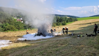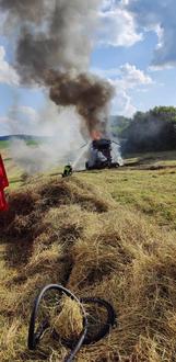 Am Freitag den 19.07.2024, um 17:28 Uhr wurde die Feuerwehr Abtsteinach in den Ortsteil Unter-Abtsteinach mit dem Einsatzstichwort "FLKW brennt landw. Gerät" alarmiert. Schon auf der Anfahrt konnte eine starke Rauchentwicklung über dem Ortsteil Unter-Abtsteinach festgestellt werden. Auf einem Feld war eine Rundballenpresse in Brand geraten. Erste Löschversuche durch die anwesenden Landwirte wurden mittels Feuerlöscher eingeleitet, jedoch stand die Presse nach kurzer Zeit in Vollbrand. Durch Funkenflug entzündeten sich mehrere kleine Flächen auf dem Feld. Das ersteintreffende TSF-W aus Unter-Abtsteinach leitete sofort den ersten Angriff mittels Schnellangriff ein. Nach Eintreffen des StLF 20/25 wurde umgehend ein Schaumangriff eingeleitet. Da sich in der Presse noch ein Rundballen befand musste diese mittels Spreizer geöffnet werden, um den Rundballen auseinander zu ziehen und abzulöschen. Aufgrund der abschüssigen Lage des Brandortes wurden auch die Feuerwehr Birkenau und die Feuerwehr Heiligkreuzsteinach mit Tanklöschfahrzeugen und Atemschutzgeräteträgern alarmiert.