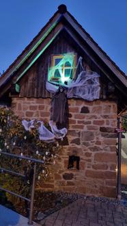 Auch in diesem Jahr hat die Dorfwerkstatt das Backhausumfeld gespenstisch dekoriert. Alle kleinen und großen Halloweenfans sind eingeladen, bei Fledermäusen, Spinnen und Skeletten vorbeizuschauen. Gern könnt Ihr dort verweilen und mit dem einen oder anderen Gespenst ins Zwiegespräch gehen. Wenn Ihr Lust habt, dann macht doch mal ein Selfie an der Stelle, die Euch am besten gefällt und schickt uns dieses per Mail oder über Facebook bis 27.10.2023. Die 3 schönsten Fotos prämieren wir dann direkt bei der Halloweenparty am Backhaus. Wir sind gespannt auf Eure Verkleidung und wünschen Euch fröhliches Gruseln.