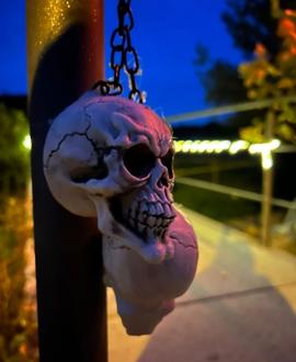Die Besucher dürfen sich auf die leckere Geisterpizza freuen, die frisch aus dem Ofen serviert wird. Und für alle, die es herzhaft mögen, gibt es eine Halloween-Kürbissuppe, aus dem großen Kessel über dem offenen Feuer. Dazu stehen heiße und erfrischende Getränke (auch alkoholfrei) bereit.
