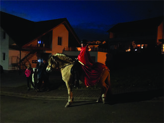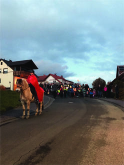 Zuvor hatte der Waldkindergarten ein kleines Theaterstück auf dem Kerweplatz aufgeführt um die Geschichte des heiligen Martin zu erzählen, der großzügig seinen Mantel mit dem armen, frierenden Bettler teilte.