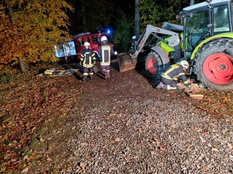 Am Freitag den 10.11.2023 fand die letzte Alarmübung der Feuerwehr Abtsteinach für dieses Jahr statt. Traditionell wird diese Übung in Form einer Nachtübung bei Dunkelheit durchgeführt. Angenommen wurde ein Forstunfall bei dem ein Waldarbeiter bei Rangierarbeiten von einem Traktor überrollt und darunter eingeklemmt wurde. Der Fahrer erlitt hierbei einen Schock und flüchtete in den Wald. Nach Eintreffen der Einsatzkräfte musste umgehend eine technische Rettung der eingeklemmten Person durchgeführt werden. Die Person war hierbei mit den Beinen und einem Arm unter den Hinterrädern des Traktors eingeklemmt. Im Anschluss musste das Waldgebiet mit mehreren Trupps und Wärmebildkameras durchsucht werden, um den Fahrer des Fahrzeuges ausfindig zu machen. Nach Abschluss der Übung und Reinigung der Einsatzfahrzeuge fanden sich die Kameraden im Feuerwehrhaus Ober-Abtsteinach zusammen, um gemeinsam zu vespern. Wir möchten uns an dieser Stelle auch bei den Kameraden der Alters- und Ehrenabteilung bedanken, welche das Essen zubereitet haben.