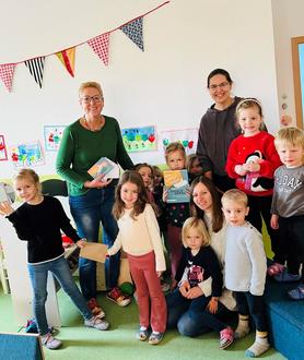 Ursprünglich sollte mit dem Geld auch für diesen Vortrag die Raummiete im Rathaus beglichen werden. Doch aus der Entscheidung der Gemeindeverwaltung heraus, der Initiative den Raum kostenfrei zur Verfügung zu stellen, entstand die gemeinsame Idee den ursprünglich für die Raummiete Gesamtbetrag in Höhe von 600,- Euro zu spenden; das Geld sollte direkt den Kindern in der Gemeinde zu Gute kommen. Als Spendenbegünstigte wurden deshalb, mit jeweils 200,- Euro die drei Kindergärten der Gemeinde - der Kindergarten „Stoanischer Abenteuerland“, der Waldkindergarten „Wirbelwind“ und der Kindergarten „Kinderinsel“ - ausgewählt. Auch die Bücher, die das Thema der Veranstaltung widerspiegeln, würden übergeben.