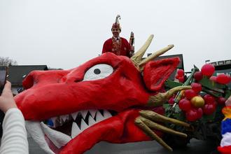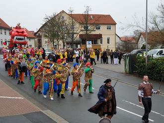 Zusammen mit der Prinzengarde und zahlreichen Narren setzte sich die kleine „Boa Narrhalla junior“ als Vorbote des großen Umzuges am kommenden Sonntag in Bewegung.