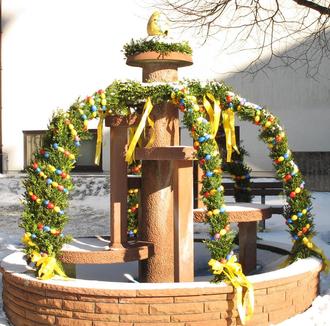 Der Brunnen vor dem Rathaus soll zu Ostern wieder geschmückt werden und die Damen-Gruppe, die sich in den letzten Jahren darum gekümmert hat, braucht viele grüne Zweige.