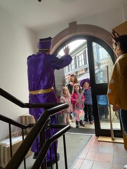 Mit viel Musik, Lärm und guter Laune zogen die Kinder gemeinsam zum Rathaus und wurden dort herzlich empfangen. Im Sitzungssaal angekommen, verwandelte sich dieser kurzerhand in eine fröhliche Feierzone. Von dort aus schlängelte sich eine lange Polonaise nicht nur durch den Sitzungssaal, sondern auch durch das gesamte Rathaus.