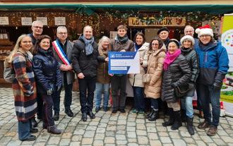 Eine Delegation aus Forchheims französischer Partnerstadt Le Perreux war zu Gast am Forchheimer Weihnachtsmarkt und überreichte eine Spende von 1000 Euro an die Offene Behindertenarbeit Forchheim.