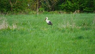 Storch auf einer Wässerwiese