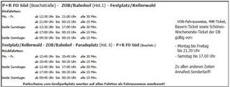 Informationen: Zu den ÖPNV-Verbindungen in den Kellerwald hat der Landkreis Forchheim eine eigene Broschüre „Annafest Fahrplan“ herausgegeben, die auch als PDF auf der offiziellen Annafest-Homepage www.annafest.bayern heruntergeladen werden kann.