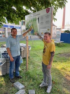 Andreas Geck, Leiter des Amtes für Öffentliches Grün und Biodiversität (links) mit Mitarbeiter Frank Schindler.