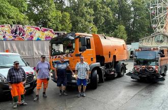 Damit es am Morgen nach dem abendlichem Feiern in Forchheims grünen Wohnzimmer auch nach Wohlfühl-Wohnzimmer aussieht, sind die „Saubermänner“ des Forchheimer Bauhofs bereits in aller Früh am Arbeiten. Tagaus, tagein, samstags und auch sonntags jeden Tag ab 6 Uhr bis 11 Uhr sind sechs Mitarbeiter von der Piastenbrücke über die Konrad- und Hans-Sachs-Straße, Leygeberstraße und natürlich am Annafestgelände unterwegs, kehren die Zufahrtsstraßen, fegen die angrenzenden Wege, leeren Papierkörbe, schichten Müllsäcke.