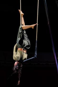 Hand in Hand mit dem Risiko zu arbeiten, ist die Essenz des Zirkus. „Vis dans la Vide“, auf deutsch in etwa „der Sprung ins Leere“, erzählt von der Gefahr, der sich die Artist*innen aussetzen, vom Vertrauen in Fänger und Material, von der Angst vor dem Absprung, vom Einsturz und vom Wiederaufbau, vor allem aber davon, dass man zusammen so viel weiter kommt als alleine. Die Musik spielt das Anarchist Brass Collective.