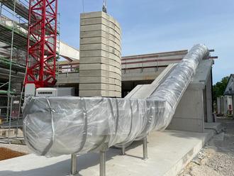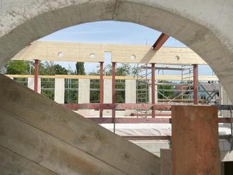 Spatenstich der Baumaßnahme KiTa Merowingerstraße war am 25.10.2023. Die Rohbauarbeiten konnten vor wenigen Wochen fertig gestellt werden. Seit Anfang Juli hat der Zimmerer seine Arbeiten aufgenommen. Im August erfolgt der Einbau der Fenster und Außentüren, sodass ab Herbst mit dem Innenausbau (inkl. Haustechnik) begonnen werden kann. Die Fertigstellung der KiTa ist für Ende 2025 geplant.
