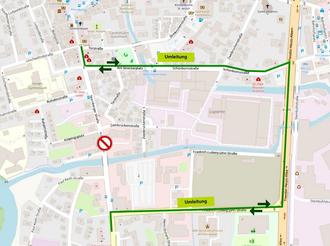 Die derzeit dafür vorgesehene Umleitung für den Autoverkehr erfolgt: